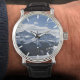 En vy över Alpernorna. Alpbergen. Armbandsur