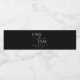 Minimalistiskt etikett för vattenflaska för bröllopsrepetitionsmiddag med typografitext som säger "en dag till". Bakgrunden är svart.
