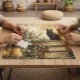 Add cozy magical vibes to anything with this Enchanted Black Cat Library Art design. A sleek black cat perches on a stack of old books, framed by climbing vines, autumn leaves, berries, and softly glowing candles against a warm antique backdrop. The scene feels like a quiet corner of an enchanted library—perfect for witchy, cottagecore, and book-lover aesthetics.
