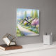 This soft watercolor landscape evokes a tranquil cottagecore dream, where a winding path drifts through flowering meadows toward peaceful countryside homes. Airy brushstrokes and gentle washes create a light, whimsical mood filled with blooming trees, pastel wildflowers, and fresh spring greens. Blush pinks, creamy whites, sky blues, and tender yellows blend seamlessly, giving the scene an enchanting, storybook quality. The composition feels calm and inviting, capturing the romance of slow rural life and the quiet beauty of nature awakening. With its folk-inspired charm and serene atmosphere, the artwork radiates warmth, nostalgia, and a sense of peaceful escape into a blossoming countryside. AI generated artwork.