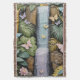 This artwork portrays a magical jungle waterfall, cascading gently amidst a vibrant landscape of pastel-coloured jungle plants and flowers. A flurry of delicate butterflies flutters throughout, adding a whimsical touch to this serene and lush oasis.