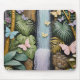 This artwork portrays a magical jungle waterfall, cascading gently amidst a vibrant landscape of pastel-coloured jungle plants and flowers. A flurry of delicate butterflies flutters throughout, adding a whimsical touch to this serene and lush oasis.