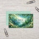 Define your brand with lush beauty and the magical elegance of a forgotten realm using this captivating business card. The design centers on a spectacular vibrant green forest valley, where layers of rolling hills surround a winding river. In the distant background, a fairy tale castle or palace sits atop a cliff. The sky is an ethereal mix of teal and bright light with subtle stars and magical sparkles, enhancing the sense of wonder. The entire foreground is lavishly framed by abundant yellow roses and dark leafy vines that glow with ambient light, creating a vibrant, romantic border. This artwork blends rich, magical realism with opulent, sophisticated florals, making your card truly unforgettable. This business card is ideally suited for a high-end event stylist specializing in fairytale or garden-themed celebrations, a boutique hotelier wanting to convey a magical, serene setting, or a fine art photographer showcasing lush natural scenes. It would also perfectly suit a fantasy novelist or game developer seeking distinctive, narrative-driven branding, or a luxury floral designer emphasizing vibrant, abundant arrangements. The card's captivating combination of enchanted scenery and abundant yellow florals ensures it is versatile for any sophisticated announcement, a refined gift enclosure, or an elegant invitation.