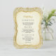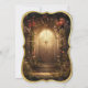 En magisk bröllopsinbjudan designad med ett fantastiskt tema. Bakgrundsdesignen har en ornerad gyllene dörr omgiven av lush-blommor och glidblad, som skapar en drömliknande, sagbar ambians. Den främsta utformningen kompletterar denna elegans med ett lyxigt Medelhavsorienterat guld-ram som inspirerats av Medelhavsbrickor, och innesluter ett mjukt åldras-beige-centrum - perfekten för din bröllop-meny eller anpassningsbar. Perfekt för bröllop, trädgårdsceremonier eller fantasintemat firande.
