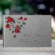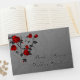 Grått-bakgrund med röd ros på en gästbok för vinet bröllop.