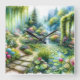 A dreamy cottagecore landscape unfolds with a winding stone path, cascading waterfall, and a serene lily pond surrounded by lush florals and trailing greenery. Soft watercolor textures blend pastel pinks, fresh greens, and tranquil blues, creating a whimsical, storybook atmosphere that feels both magical and serene. Romantic blooms, mossy arches, and shimmering water evoke an enchanting secret garden filled with boho charm and fairytale wonder. AI generated artwork.