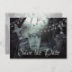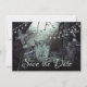 Det här Save the Date bröllop-meddelandet har en förtjusande gotisk graveyard-scen i skuggor av grått. De gamla gravstenarna är utspridda med ljus hängande från förfärande träd.