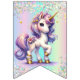 Lägg till en magisk beröring till din party-décor med den här charmerande, enmajsmatade buntbanderollen! Med pastel-färgad flaggor, goda enmajsmönster och regnbåge är denna banderoll "Grattis på födelsedagen" perfekt för att skapa en festlig atmosfär vid alla enmajsmätna firande. Med glitteraccenterna och de visuella detaljerna får du gnistra och skina i party. Håll det över party bord, ingången eller som en fotobakgrund för att göra ditt barns födelsedag extra speciell!