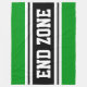 Den här sportiska fotbollsdesignen har fet atletisk ZON END-text i vitt svart och tvillingvit vågrät vitt tävla rand mot ljust grönt yttre kant. Färg och text i den här designen kan vara personlig genom att redigera designen.