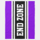 Den här sportiska fotbollsdesignen har djärv atletisk END-ZON text i vitt svart och tvillingvit vågrät vitt tävla rand mot ljust lila yttre kant. Färg och text i den här designen kan vara personlig genom att redigera designen.