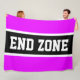 Den här sportfotbollsdesignen har fet ZON END-text inuti en stor svart mittpunkt tävla rand som är vit mot ljusa yttre ränder av rosa. Texten kan vara personlig.