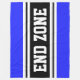 Den här sportiska fotbollsdesignen har fet atletisk ZON END-text i vitt svart och tvillingvit vågrät vitt tävla rand mot ljust royal blått yttre kant. Färg och text i den här designen kan vara personlig genom att redigera designen.