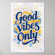 Stråla positivitet med den här svidande teckningen "Good Vibes Only". Med fet, handskriven typografi i soliga och blå, accentuerad med energiska penseldrag, är biet en munter påminnelse om att anamma optimism och dra till sig bra energi. Perfekt för att lägga till en kopp färg och en dos lycka i vardagsrummet, sovrummet eller kontorsutrymmet.