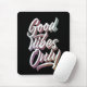 Endast text "bra vibes only" TYPOGRAPHY DESIGN, WHITE FÄRG, IN A BOLD BRUSH SCRIPT FONT.