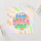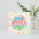 Cute retro stil soft färg lila, blue, rosa and grönt vintage Good Vibes Only Citat. Blommor, regnbåge, svampar och annan grafik i stil-hippie från 1970 års roligt. Tomt kort.