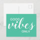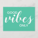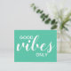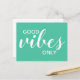 Skicka lite positivitet med detta moderna ”Endast bra vibrationer” affirmationskort. Den mjuka gröna bakgrunden och det rena vita skrivsättet skapar en fräsch och upprättande look som är perfekt för uppmuntran, vardagslappar eller inspirerande post. Anpassa färgerna eller texten i Zazzles designverktyg för att göra det unikt till ditt.
