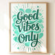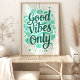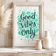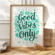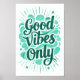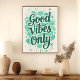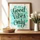 Endast bra vibrationer: Typsnittskonsttryck i teal Poster