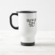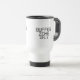 Mobil isolering. Tålig, spillresistent resemugg med centrerad schablonstilad typografi för den professionella som tar med sig sina hårda gränser in i alla miljöer.