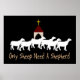 En rad fårmarscher lydigt i linje med en kyrka i bakgrunden och ord "Endast får behöver en fårbesättning." Underbart sätt för freethinkers att visa att de inte är fromma som blint marscherar till någon annans dogm.