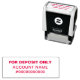 Gör det bekvämt att använda denna anpassningsbar "endast för elektronisk insättning" för självincheckning frimärke med 2 linjer anpassningsbar text i rött eller något av färg tillgängligt. Anpassa den genom att lägga till ditt namn eller ditt företag namn och ditt kontonummer. Säkert godkänna dina affärs- eller kontorskontroller och bankinsättningar.
