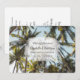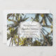 Idealisk inbjudan till par gifta sig i Karibien som vill fira sitt bröllop med vänner och familj hemma när de återvänder. Bild på träd och blå himmel och söt, vitt pärlor i form av hjärta och söta hjärtan i guld kärlek
