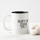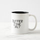 Högkontrastgränser för din morgonrutin. En premium vit keramisk kopp med svart insida, med vass stenciltypografi för att signalera att din primära buffertzon är aktiv.