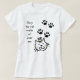Fyra svarta kattar tass avtryck står på ena sidan av skjortan, med den svarta texten på den andra som säger "Endast min katt går över mig". Under katten är tass avtryck en tecknad av en katt i lycklig som bär krona. Cute!