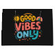 Börja firandet med ett leende. Denna presentpåse med "Endast positiva vibrationer" kombinerar djärva, retrotypografier med en glad regnbåge och soldesign. Mot en snygg svart bakgrund är det ett energiskt och positivt sätt att avsluta födelsedagar, examina eller överraskningar "bara för att".
