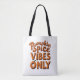 Bär med retro-flouten ditt kärna. Den här väskan har "Pumpkin Spice Vibes Only" i groovy 70-talets typografi och varm hösthöstens färg. Speciellt för att handla, för att besöka kaffe, springa eller bibliotek lägger det till mysiga säsong stil till ditt vardagliga utseende.