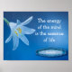 Tänkelenergin är livets kärna - Aristoteles citat poster. Vacker vit blomma på blå bakgrund.