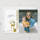 Ett enkelt julkort i elegant med en söt faux guld-folie och inslag och Glad helg med guld typografi i ett modernt stil på vit bakgrund. Lägg till ditt eget foto tillsammans med din familj namn och namnen av dina familjemedlemmar. Namn görs i ett handskriftsteckensnitt som får det att se ut som om du signerade varje kort personligen.