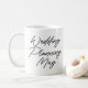 Bröllopsplanering är inte en sprint, det är ett maraton! Håll dig hydrerad med din egen personliga bröllopsplaneringsmugg med modern kalligrafiskrift och brudens eller brudgummens namn på baksidan av muggen. En superrolig förlovningspresent till bruden eller brudgummen!