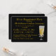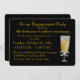 Eleganta inbjudningskort till engagemangsfest visade som en inbjudan till champagnebrunch för par. Guld färgad text för att samordna med champagnen i flöjtglaset. RSVP-information finns på baksidan. Svart bakgrund. Visas med rundad kant på inbjudningskortet.