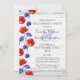 Koordinerade inbjudningskort till festen är ett vackert sätt att fira det speciella paret! Praktfulla röda vallmo och vackra blå kornblommor ger en energisk färgklick mot en rustik vitlaserad träbakgrund. Denna moderna lantliga design är full av charm från vilda blommor för den romantiska landsbybröllopet!