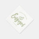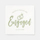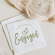 En rolig och unik manus skrivet servett skräddarsydd specifikt för dig en engagemangsfest. Den har ordet förlovad med vigselringar som vilar runt det. Under detta och ovanför det står namnen på bruden och brudgummen och förlovningsdatum.