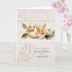 Congratulate the couple who has announced their engagement with this personalized greeting with lovely wedding rings and flowers.