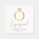 Förlovning ring och ord "förlovad!" över napkin i ett skript och meddelandet "Grattisar" under. Anpassa med parets namn.