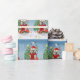 En hund i snö med julklappar och snö fall är en perfekt gåva till någon som kärlek hundar.