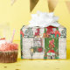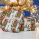 Engelska Bulldog-julen sitta utanför det dekorerade hemmet med julkrans, Julgran är en julklapp för hundälskare i perfekt.
