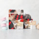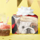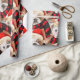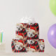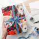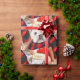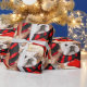 Denna engelska Bulldog är klädd för julhelgen i en röd och svart vinterscarf och skapar en roligt mönster i hundar för att ha täckt in julklappar från hund älskare.