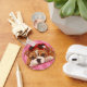 Den vackra guldhundvalpen med solglasögon, på rosans stripi, målad av konstnären Maryline Cazenave.