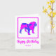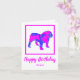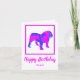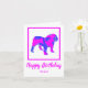 Engelska Bulldog silhouette i galna shock rosa och blå, ljusa moderna abstrakt mönster. Lustigt födelsedagsmeddelande inuti kan ändras till vad du vill. Anpassa med namn under Grattis på födelsedagen-känslan.