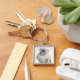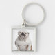 Engelsk bulldogg som framme sitter av vit fyrkantig silverfärgad nyckelring