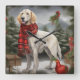 Mitt i en vintersaga njuter en lekfull hund en snöig julmorgon och lämnar efter sig bedårande tassavtryck i den glittrande snön. Deras glädje och nyfikenhet tillför värme till den förtrollande högtidsscenen och gör den verkligt magisk.