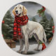 Mitt i en vintersaga, njuter en lekfull hund av en snöig julmorgon och lämnar efter sig bedårande tassavtryck i den glittrande snön. Deras glädje och nyfikenhet tillför värme till den förtrollande högtidsscenen och gör den verkligt magisk.