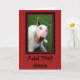 Den engelska tjurterrieren fotograferar. Texten kan skräddarsy till något som du önskar. "Ett leende för dig! Nu satt det på ditt ansikte, därför att det är var jag önskar att se den alltid!", Gör någon dag med denna gulliga hälsning.