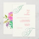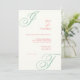 Enkel minimalistisk design baserad på monogram initial mjuk för bruden och brudgummen. Färgerna Engelskt päron och vår poppy, en sjögrön och varm rosa, på en elfenbensvit bakgrund. Färgerna är helt anpassningsbara i designverktyget. Vänder sig till en mjuk akvarellblomsterbukett i färgerna från en engelsk vårträdgård.