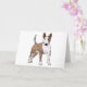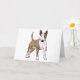 Den engelska Buller Terrier-designen har en vit och brindle Bull Terrier i en klassisk trekvartsställning.