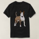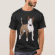 Den engelska Buller Terrier-designen har en vit och brindle Bull Terrier i en klassisk trekvartsställning.