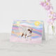 En brun och vit engelsk bulldog provar ut vingar bland himlens fluffa moln innan de kan komma in i Rainbow Bridge där änglar och vänner väntar.l